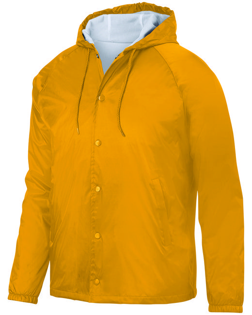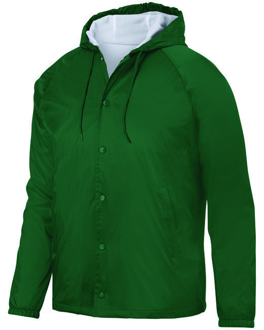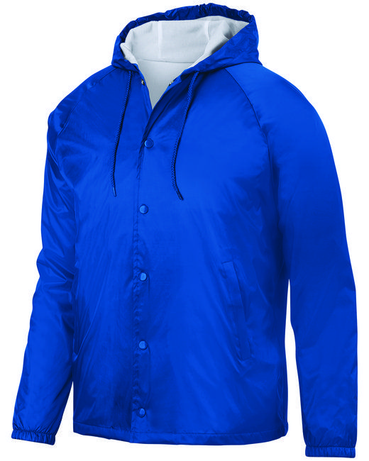 Outer shell of 100% nylon taffeta ; Lined with 100% polyester brushed tricot ; Water-resistant; Woven label; Snap front; Hood with drawcord ; Raglan sleeves for maximum mobility; Front pockets; Elastic cuffs; Open bottom;